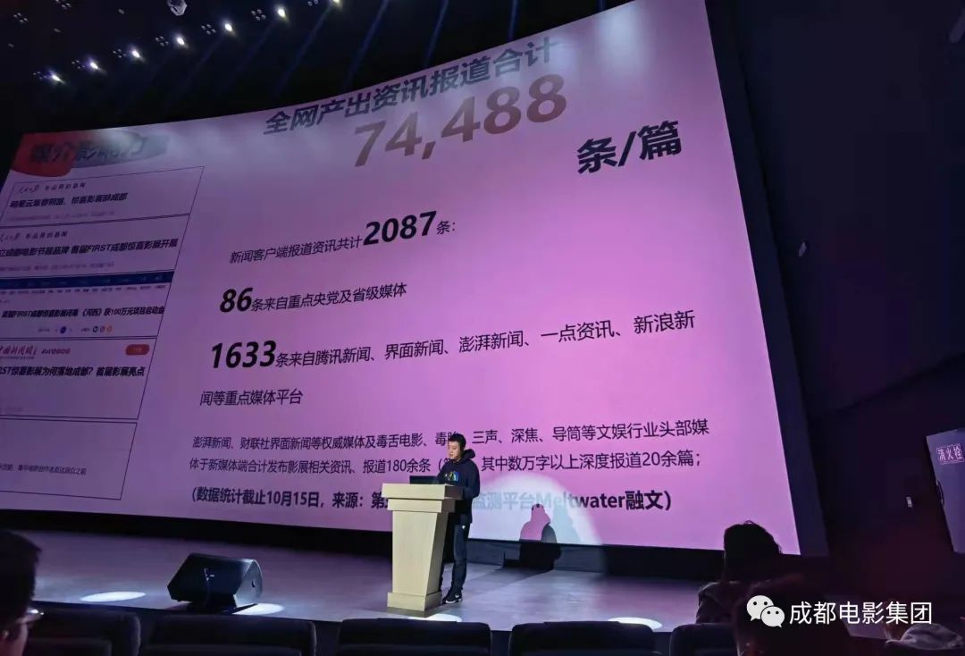 年終大會上“FIRST成都驚喜影展”項目由金沙院線董事長賴崇雷同志對全體員工進行分享和介紹,總結(jié)此次項目成果及收獲。